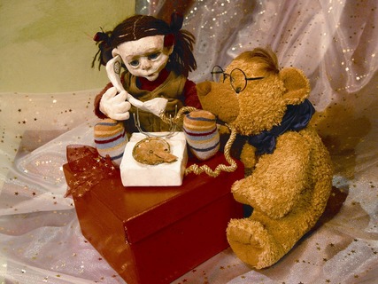 _sitzt die Puppe Annabella mit dem Bären Ladislaus._