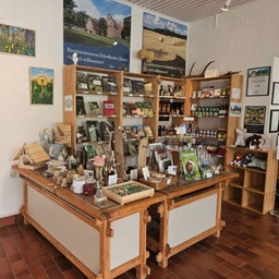 In der Schorfheide-Information in Joachimsthal ist der Shopbereich gefüllt mit regionalen Produkten. Es können Honig, Senf, Marmeladen oder Liköre aber …