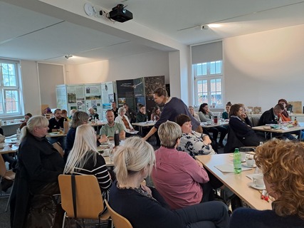 Das Programm hatte bereits im Vornherein großes Interesse geweckt, sodass sich über 30 Teilnehmerinnen und Teilnehmer angemeldeten. Bei leckeren Snacks und Getränken gab es schon vor Beginn der Veranstaltung rege Gespräche. Der offizielle Erfahrungsaustausch begann mit einer Vorstellungsrunde, wo die Teilnehmenden unter anderem Ihre Lieblingsorte in der eigenen Region vorstellten sowie Souvenirs präsentierten, die in den Tourist-Informationen besonders gut verkauft werden. Zudem wurden Erwartungen an die Veranstaltung abgesteckt und ein kurzer Rückblick auf die diesjährige Herbst-Infotour der WITO gegeben, die ebenfalls unter dem Motto „Auf dem Weg zu einer modernen Tourist-Information“ stattgefunden hatte. Die aus der Infotour gewonnenen Erkenntnisse zu den Stärken und Herausforderungen der Tourist-Informationen wurden von den Teilnehmenden des Erfahrungsaustauschs durch eigene Eindrücke ergänzt. Nach einem leckeren Mittagessen führte Julika Ziegenhagen die Gruppe durch das BARNIM PANORAMA sowie die dort ansässige Tourist-Information. Im Anschluss gab es Gruppenarbeiten zu drei priorisierten Herausforderungen, zu denen die Teilnehmenden gemeinsam Lösungsansätze erarbeiteten und diskutierten. Die Ideen werden in den nächsten Erfahrungsaustausch-Formaten weiter vertieft und wenn möglich umgesetzt.