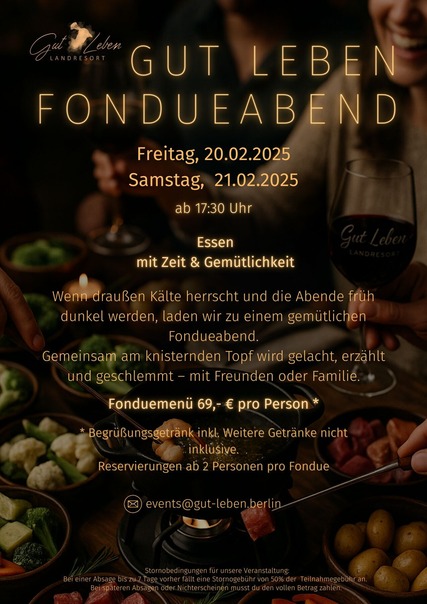 Fonduemenü:69,00€ p.P. *Begrüßungsgetränk inkl. weitere Getränke nicht