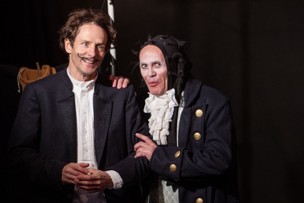 Hanno Wuckasch und Heiki Ikkola spielen dann in der wunderbaren Ausstattung von Bärbel Haage eine Geschichte über den Nutzen von Notlügen, über das Selbstbewußtsein in ausweglosen Momenten und über die Erkenntnis, dass das Kleine groß und das Große klein werden kann - wenn man nur will! Das Stück atmet den Hauch von Kleinkriminalität, fadenscheinigen Varietés und einer Welt, in der nur Witz, das Hinterfragen von Autoritäten und ein paar krumme Tricks das gute Leben sichern.